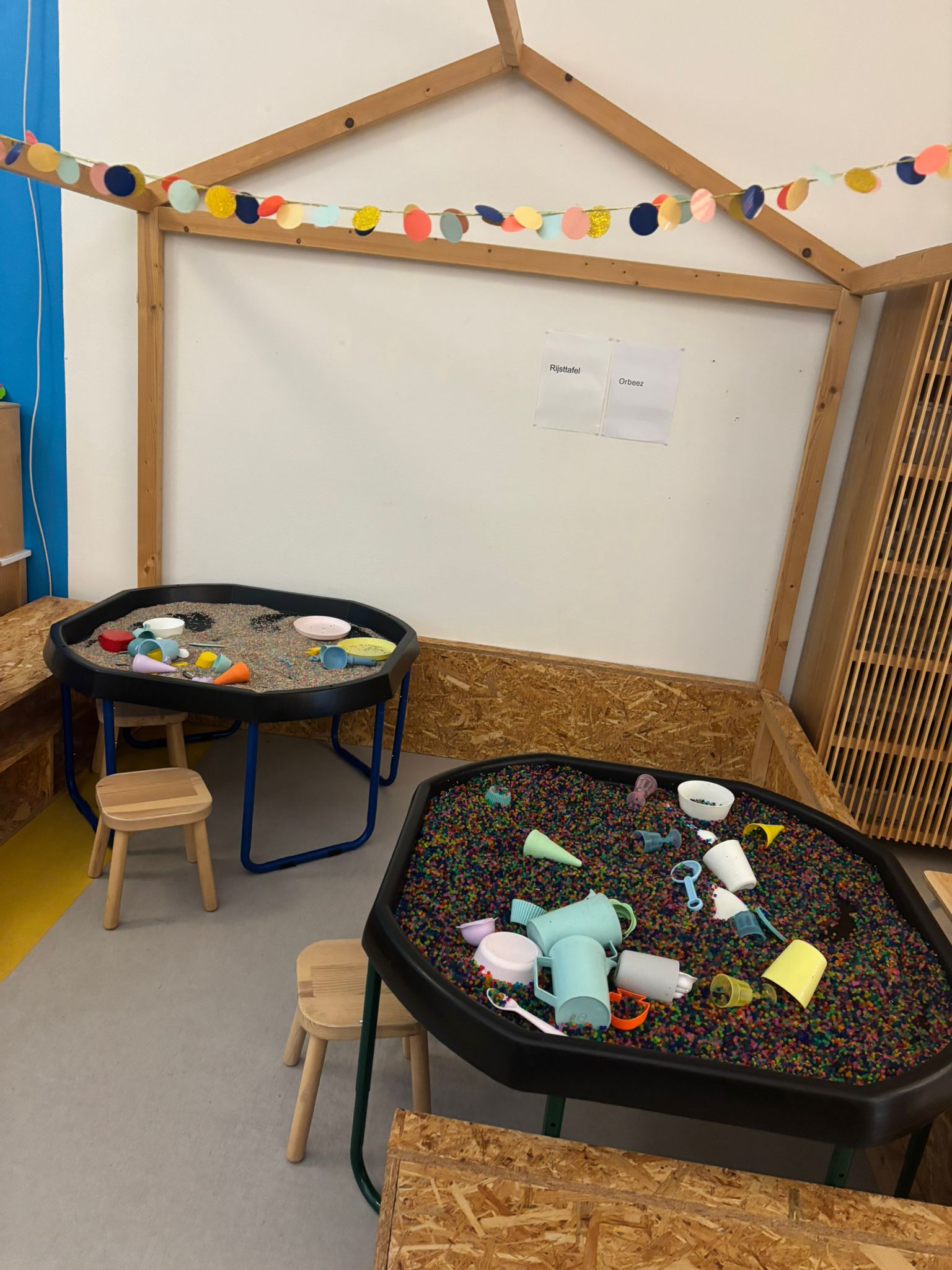 Op onze locatie zijn twee groepen. Vier dagen in de week zijn we beneden op de vaste groep en op donderdag zijn de kinderen vanaf groep 5 boven. Onze plusgroep. Hier hebben we hoeken die ingespeeld zijn op de behoeftes van de oudere kinderen.